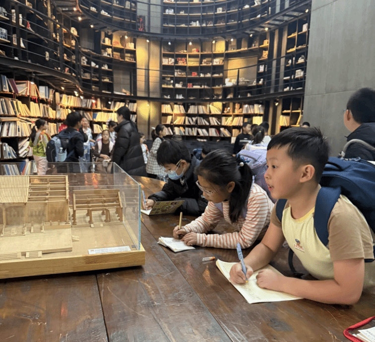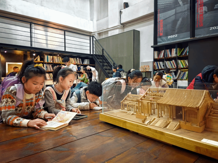 合作更注重动手实践与亲身体验。在环境优雅的建筑博物馆,一场“小小建筑师”工作坊正在悄然进行。孩子们围坐在木桌前,专注地观察着置于玻璃罩内的精美木制建筑模型,并在大学生党员们的耐心指导下,动手在笔记本上描绘自己的设计构想。现场学习氛围浓厚,生动体现了“队伍共育、资源共享”的合作模式,让抽象的课堂知识在实践互动中内化于心。